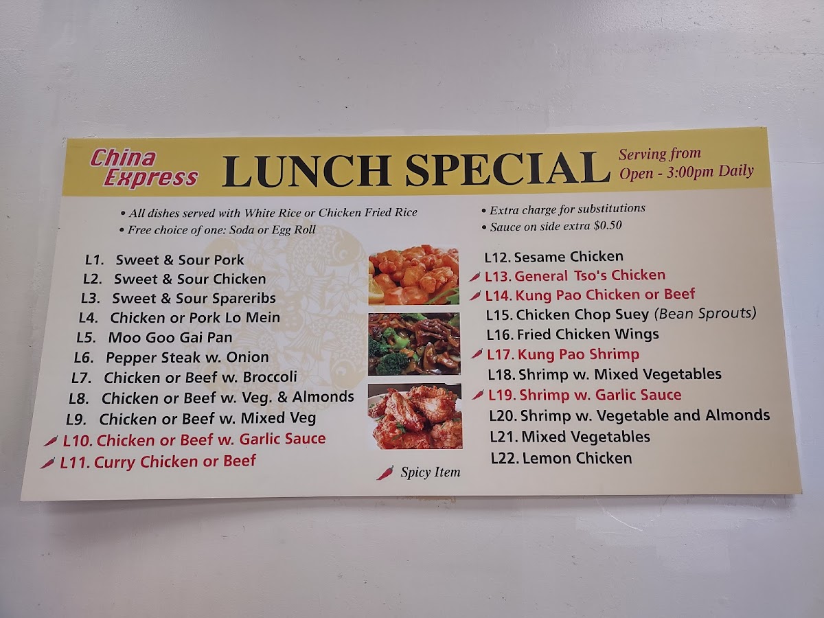 If you’re in the mood for noodles, their Mein Feng options blend flavor and variety, ensuring every bite is satisfying. Customers rave about the generous portions and the freshness of the ingredients, making it a top choice for takeout. With friendly service and a cozy atmosphere, China Express is not just a restaurant; it’s a community favorite that leaves you craving more.